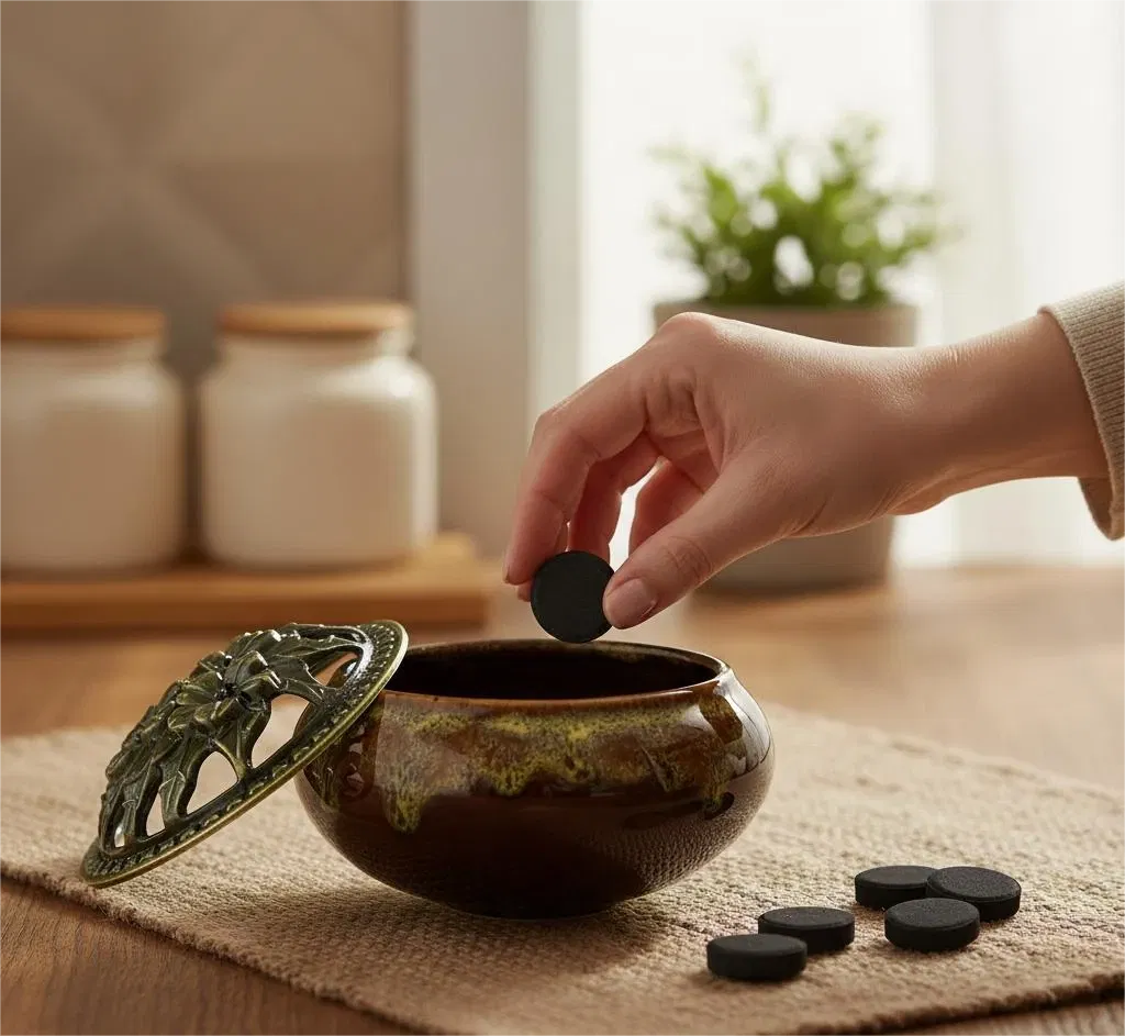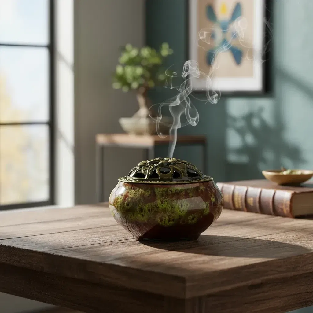 Sahumador Ceramica Esmaltado con Tapa